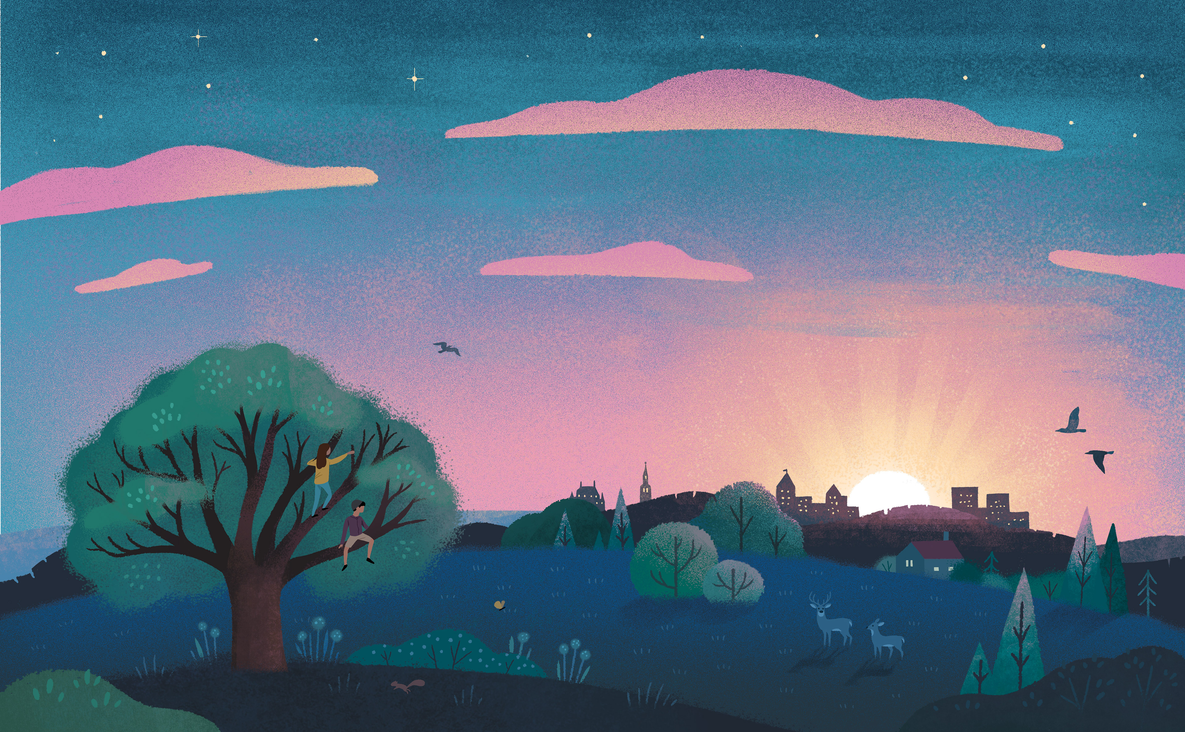 by Robert Heidbreder is full of delightful pocket-sized poems published by Greystone Books. I loved illustrating expansive, colorful skyscapes from all over the world.